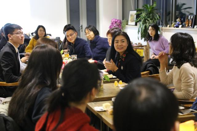 英语系张华老师、西葡语系蔡学娣老师作为获奖教师代表发言。两位老师都首先对捐赠方与学院表达了感谢。接下来张华分享了作为李赋宁老师的学生与同事时与李老师相处的经历,表示从李赋宁老师的言传身教中受益匪浅,并拿出求学时李赋宁老师所编教材与在座的师生们共同分享。蔡学娣也分享了自己的求学经历,回忆了陪伴外院成长的近二十年时光。两位老师最后均表示会继续在平凡的岗位上脚踏实地地做好自己的本职工作,教书育人,为学生做一个好榜样,为北大和外院作出自己的贡献。
